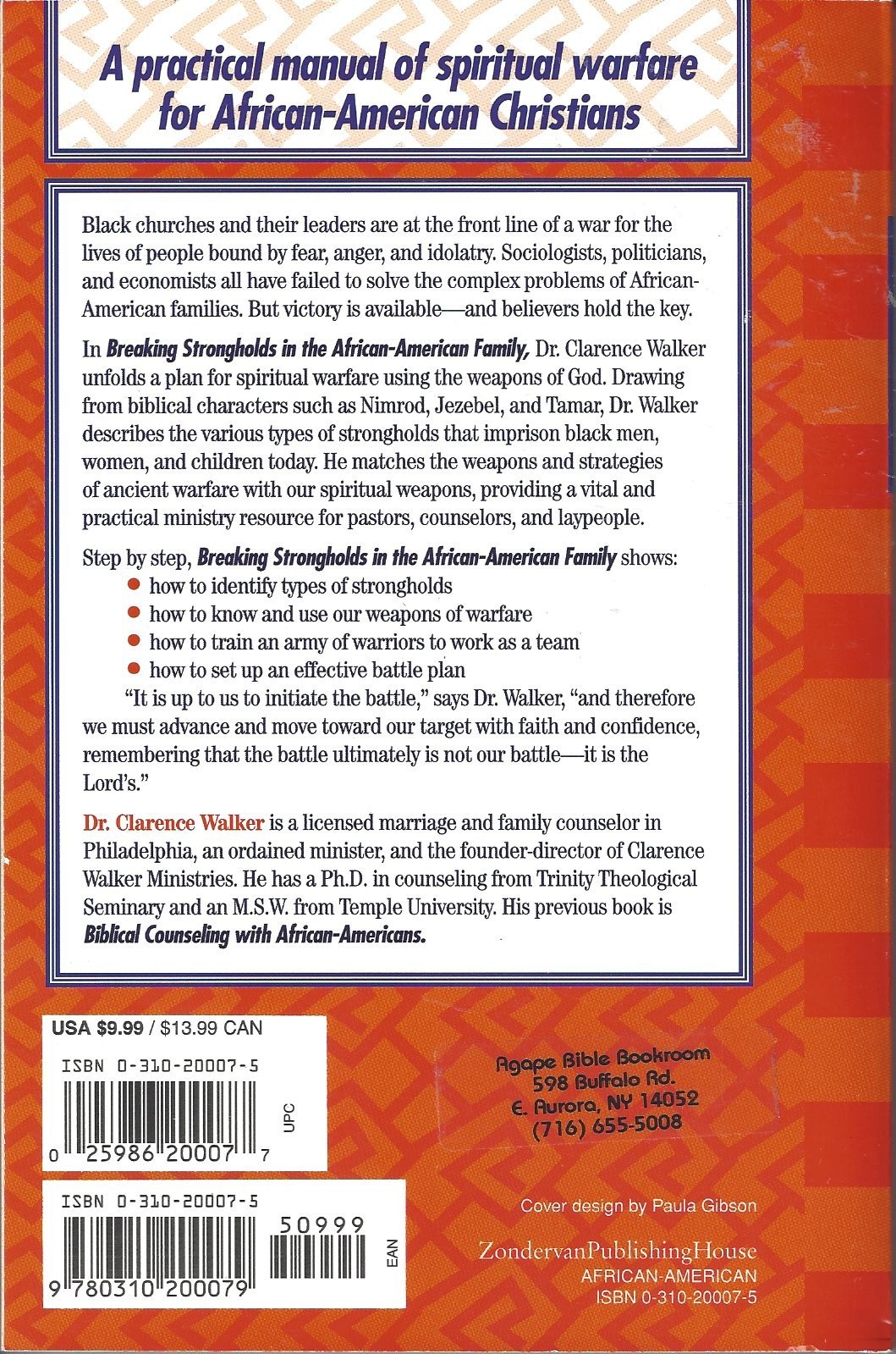 Black churches and their leaders are at the front line of a war for the lives of people bound by fear, anger and idolatry. Sociologist, politicians, and economists all have failed to solve the complex problems of African-American families. But victory is available - and believers hold the key. In Breaking Strongholds in the African-American Family, Dr. Clarence Walker unfolds a plan for spiritual warfare using the weapons of God. Drawing from biblical characters such as Nimrod, Jezebel and Tamar, Dr. Walker descries the various types of strongholds that imprison black men, women and children today. He matches the weapons and strategies of ancient warfare with our spiritual weapons, providing a vital and practical ministry resource for pastors, counselors and laypeople.