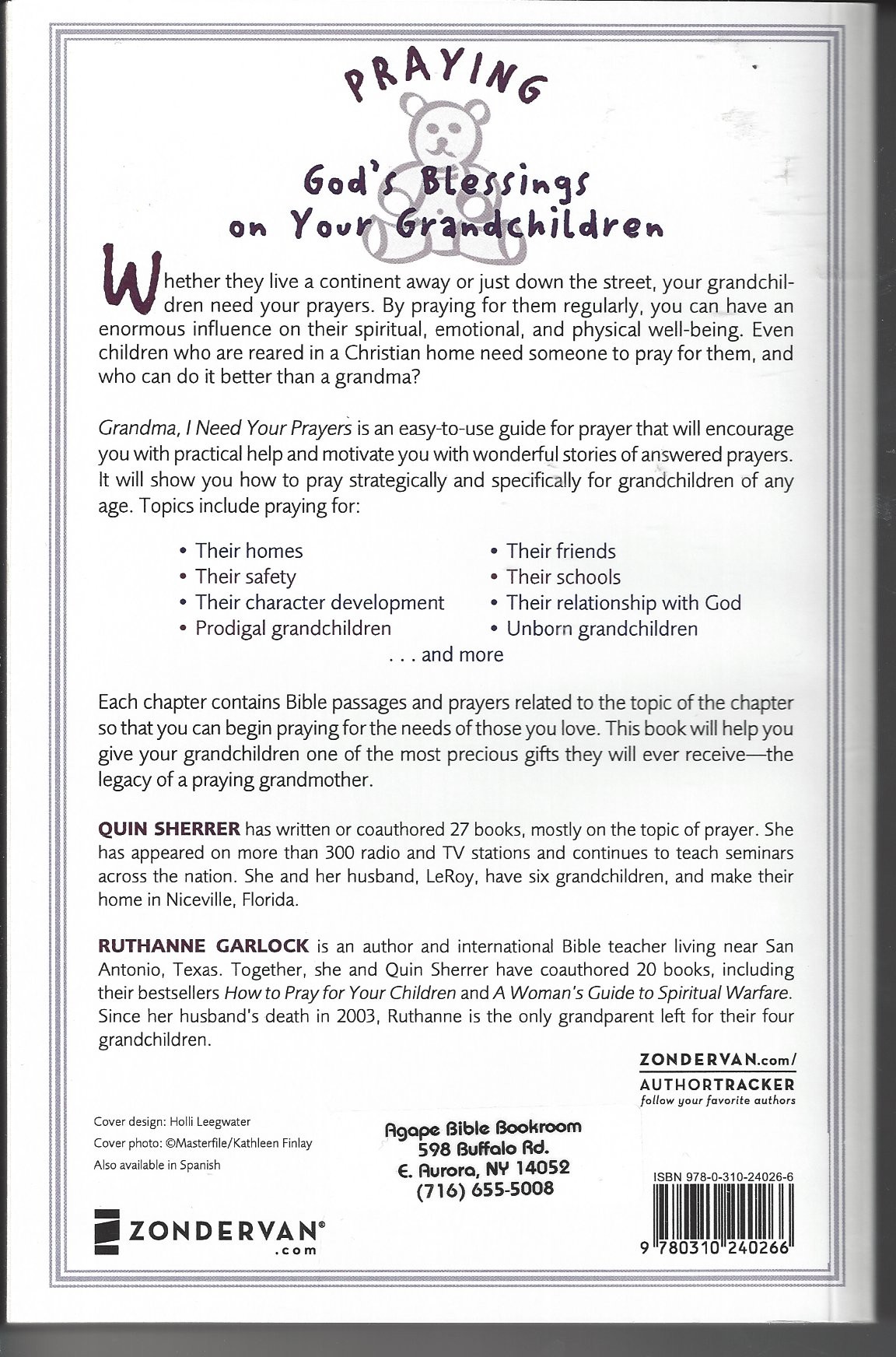 Whether they live a continent away or just down the street, your grandchildren need your prayers. By praying for them regularly, you can have an enormous influence on their spiritual, emotional, and physical well-being. Even children who are reared in a Christian home need someone to pray for them, and who can do it better than a grandma?