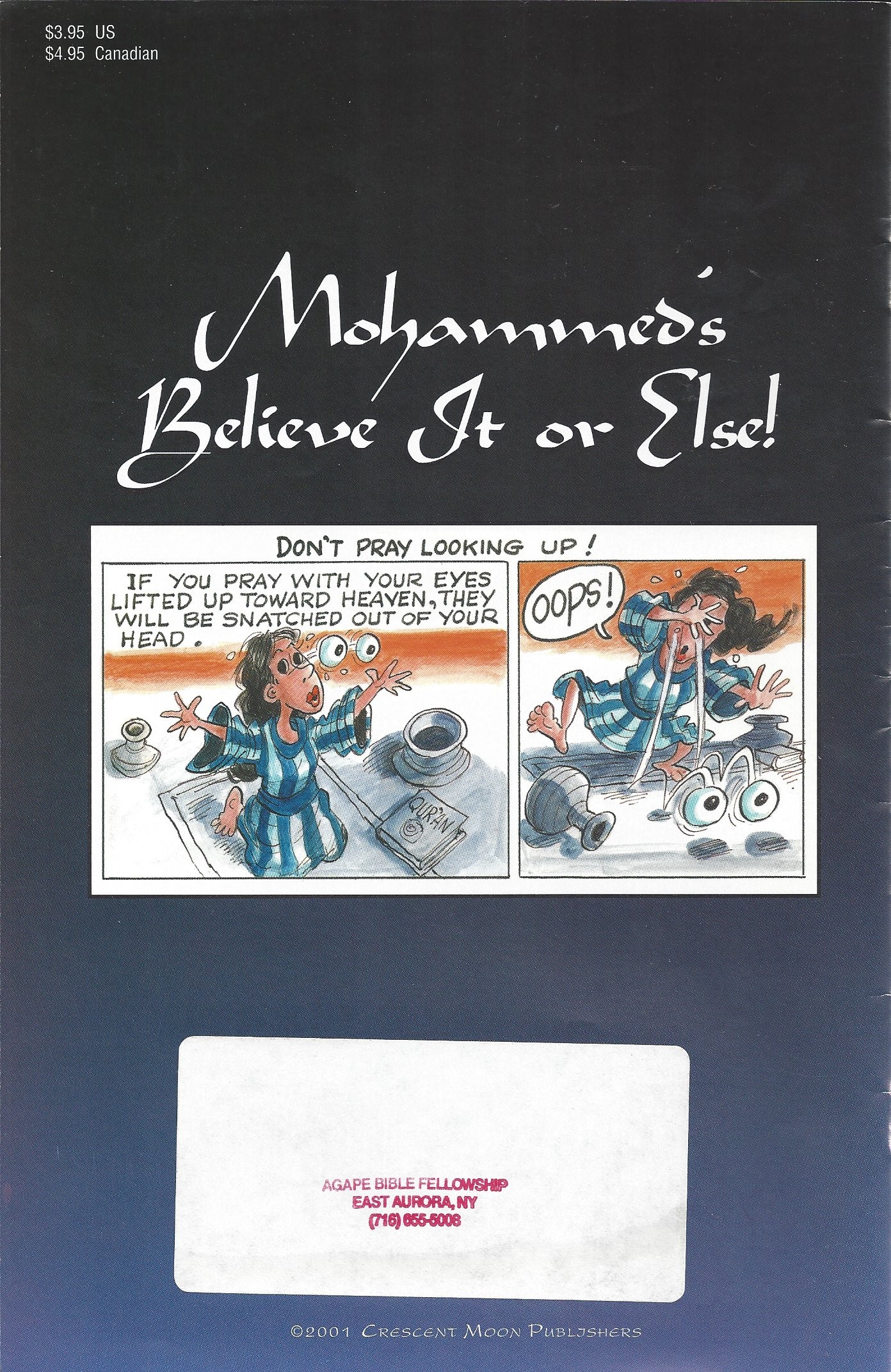 In Mohammed's Believe It or Else!, author and illustrator Abdullah Aziz takes the actual teachings of Mohammed from the Qur'an and the Hadith (the "inspired" commentary on the Qur'an) and illustrates them in a comic book. Here are some examples of the startling teachings of Mohammed: