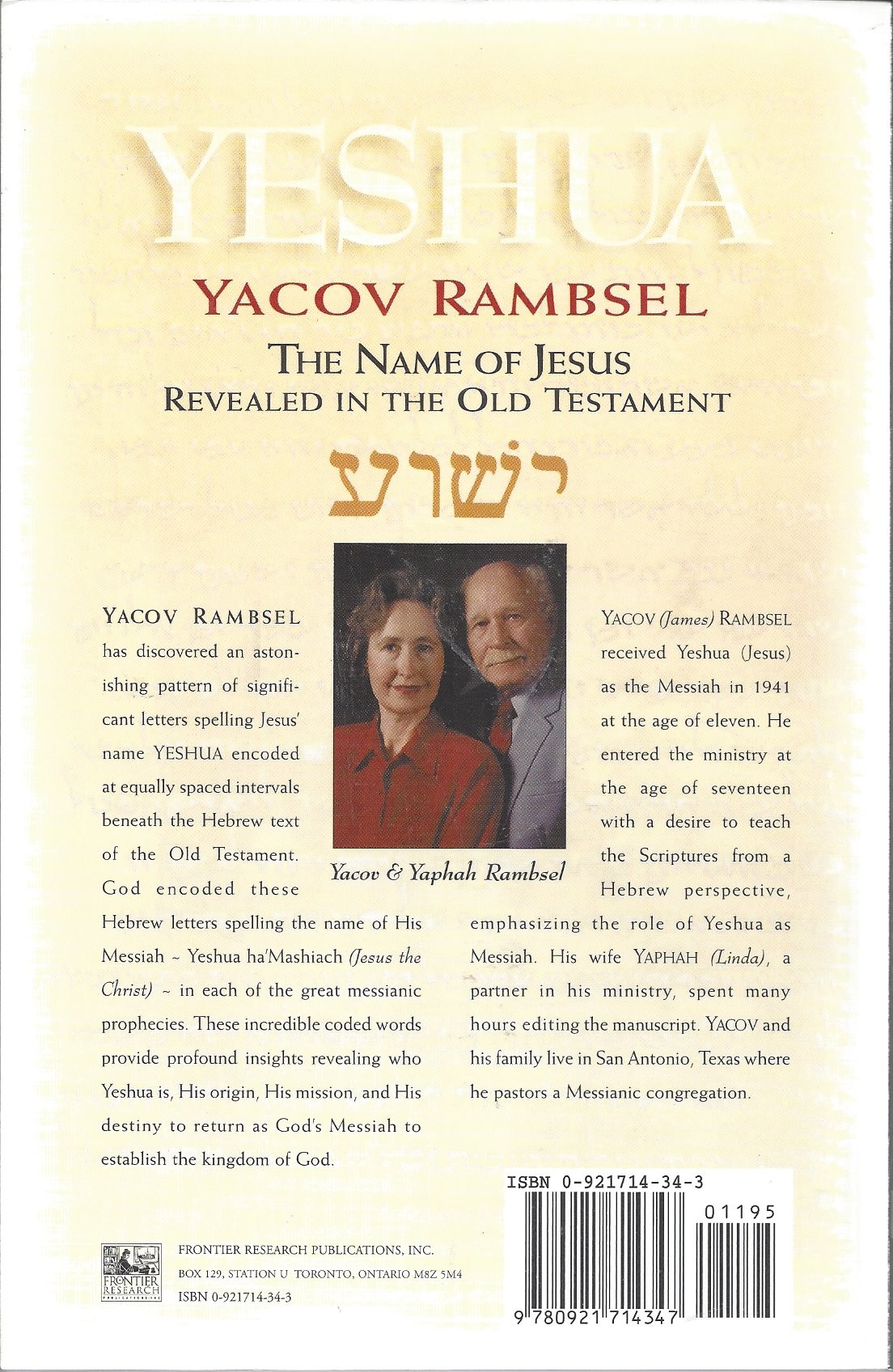 Yacov Rambsel has discovered an astonishing pattern of significant letters spelling Jesus' name Yeshua encoded at equally spaced intervals beneath the Hebrew test of the Old Testament. God encoded these Hebrew letters spelling the name of His Messiah - Yeshua ha'Mashiach (Jesus the Christ) - in each of the great messianic prophecies. These incredible coded words provide insights revealing who Yeshua is, His origin, His mission and His destiny to return as God's Messiah to establish the kingdom of God.